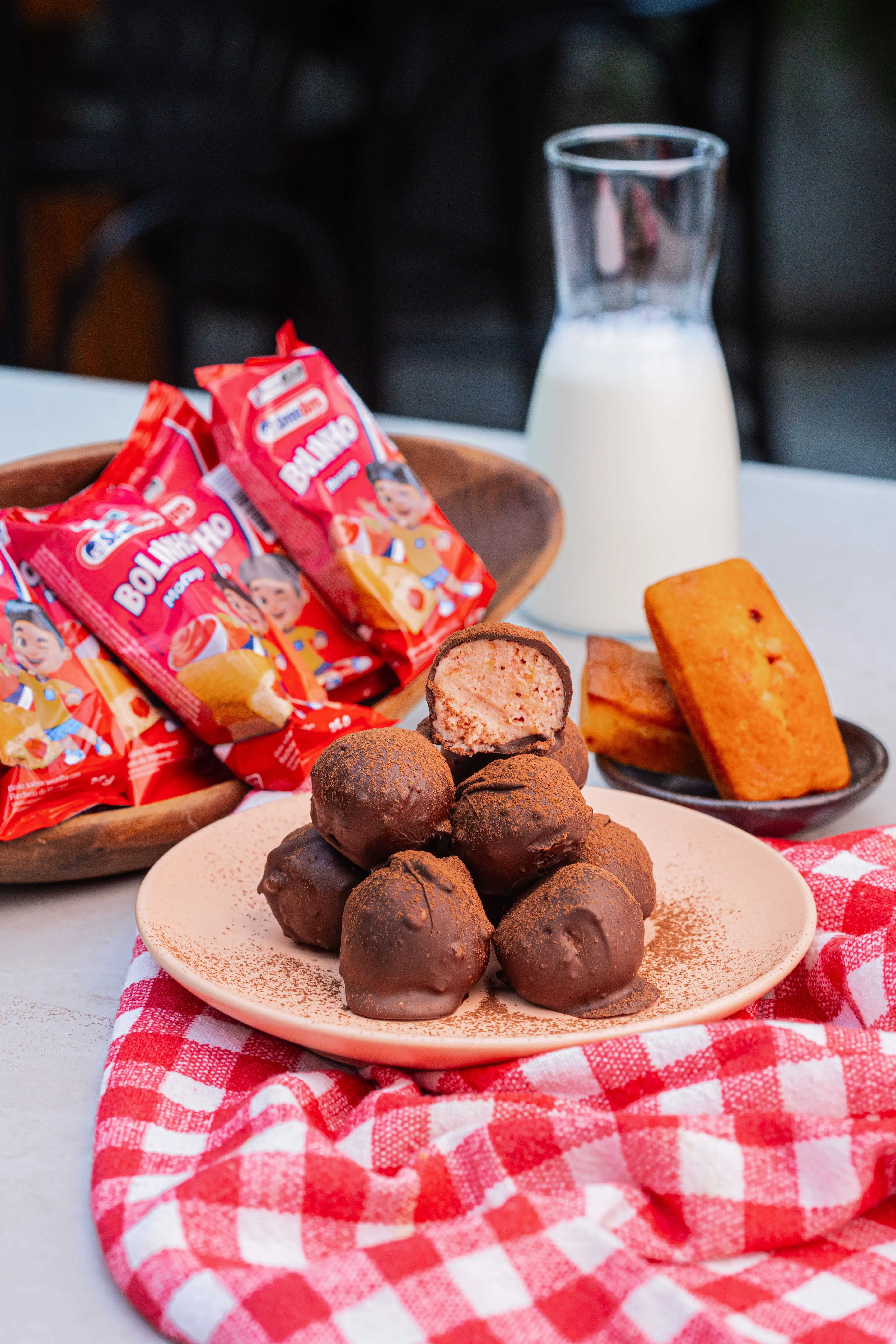 4. Derreta o chocolate e mergulhe as bolinhas.