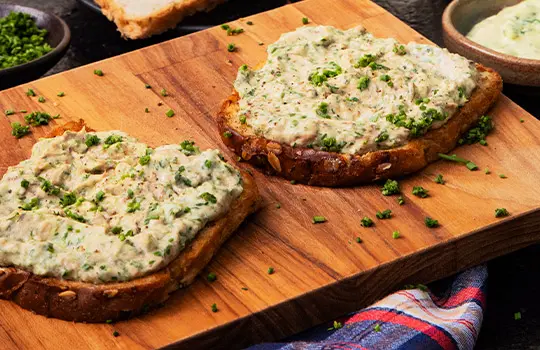 Torre as fatias de pão, depois de crocantes, espalhe uma camada de maionese com a sardinha, finalize com um pouco de cebolinha e salsinha picada e sirva.