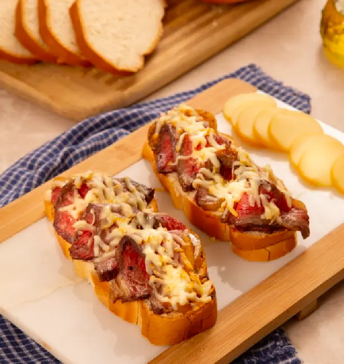 6. Fatie e fraldinha e disponha as fatias sobre o pão sovado na chapa.