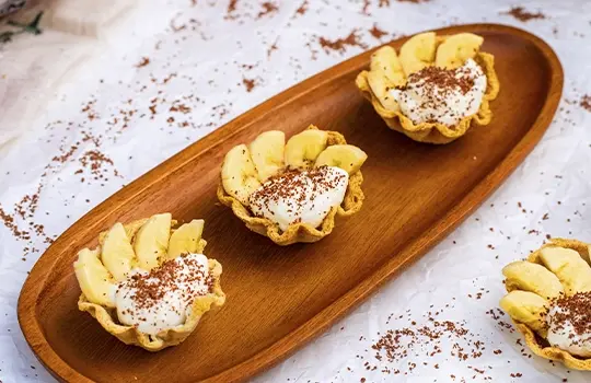 Uma versão divertida e criativa da clássica banoffee, servida em delicadas cestinhas de pão de forma. Ótima opção para impressionar em sobremesas individuais ou em um lanche especial.