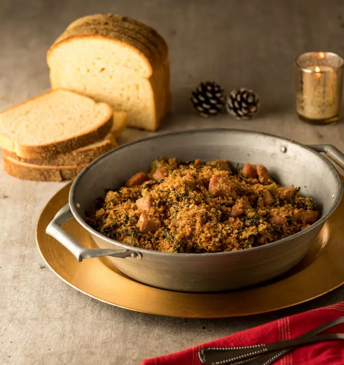 FAROFA CROCANTE DE PÃO DE MILHO COM ESCAROLA E PERNIL