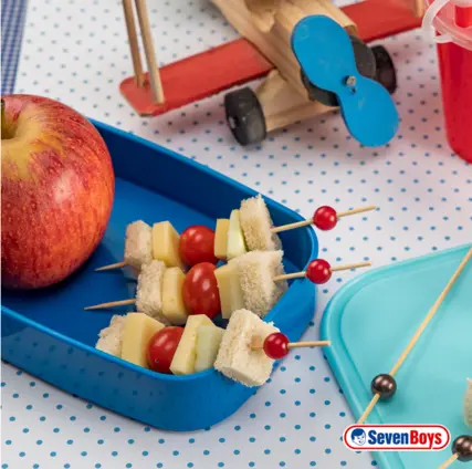 2. Colocar o tomate, o pepino e o queijo intercalados no palitinho