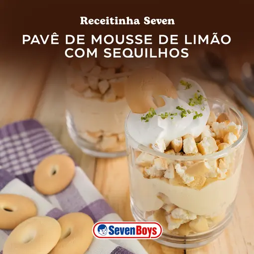 Em taças de servir, distribua uma camada de Sequilhos Seven Boys grosseiramente picado e sobre essa camada, a mousse de limão. Finalize com outra camada de Sequilhos Seven Boys. Caso queira, enfeite com chantilly e raspas de limão.