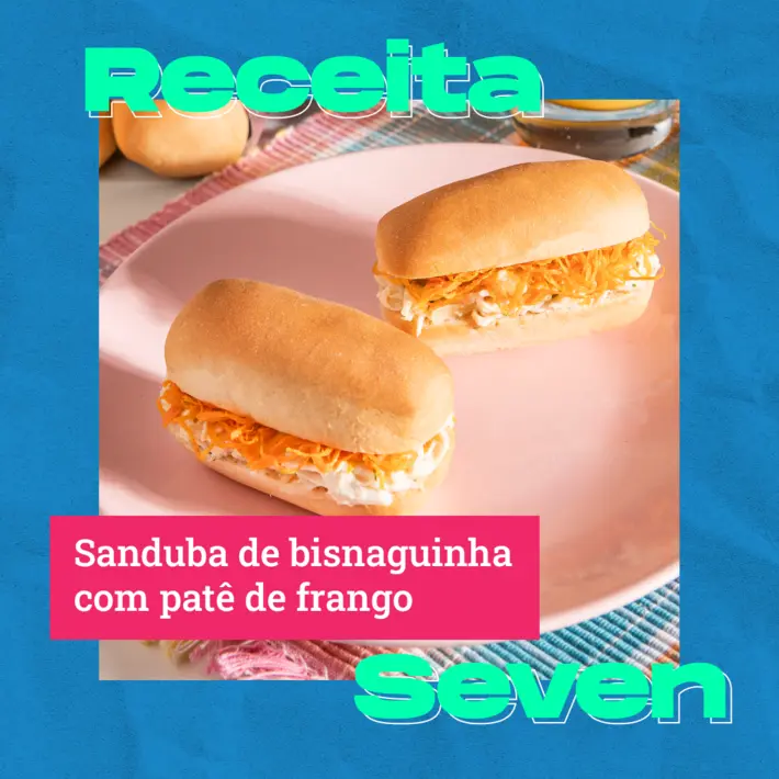 Corte ao meio as Bisnaguinhas Seven Boys e sobre uma das metades distribua o patê de frango. Finalize com a cenoura palha.