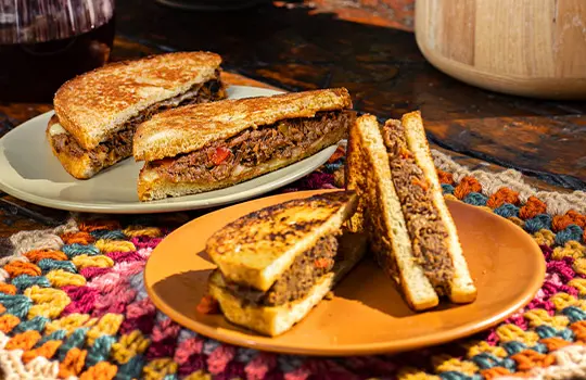 Torre as fatias de pão e recheie com a carne louca e sirva.