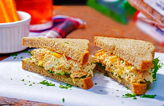 1. Misture o frango, milho, maionese, salsinha, sal e pimenta;