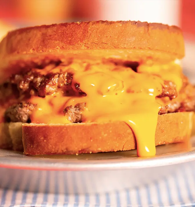 Coloque 1 hambúrguer sobre 1 fatia do pão e espalhe o molho cheddar; outro hambúrguer, o cheddar e finalize com a fatia de pão. Sirva em seguida.