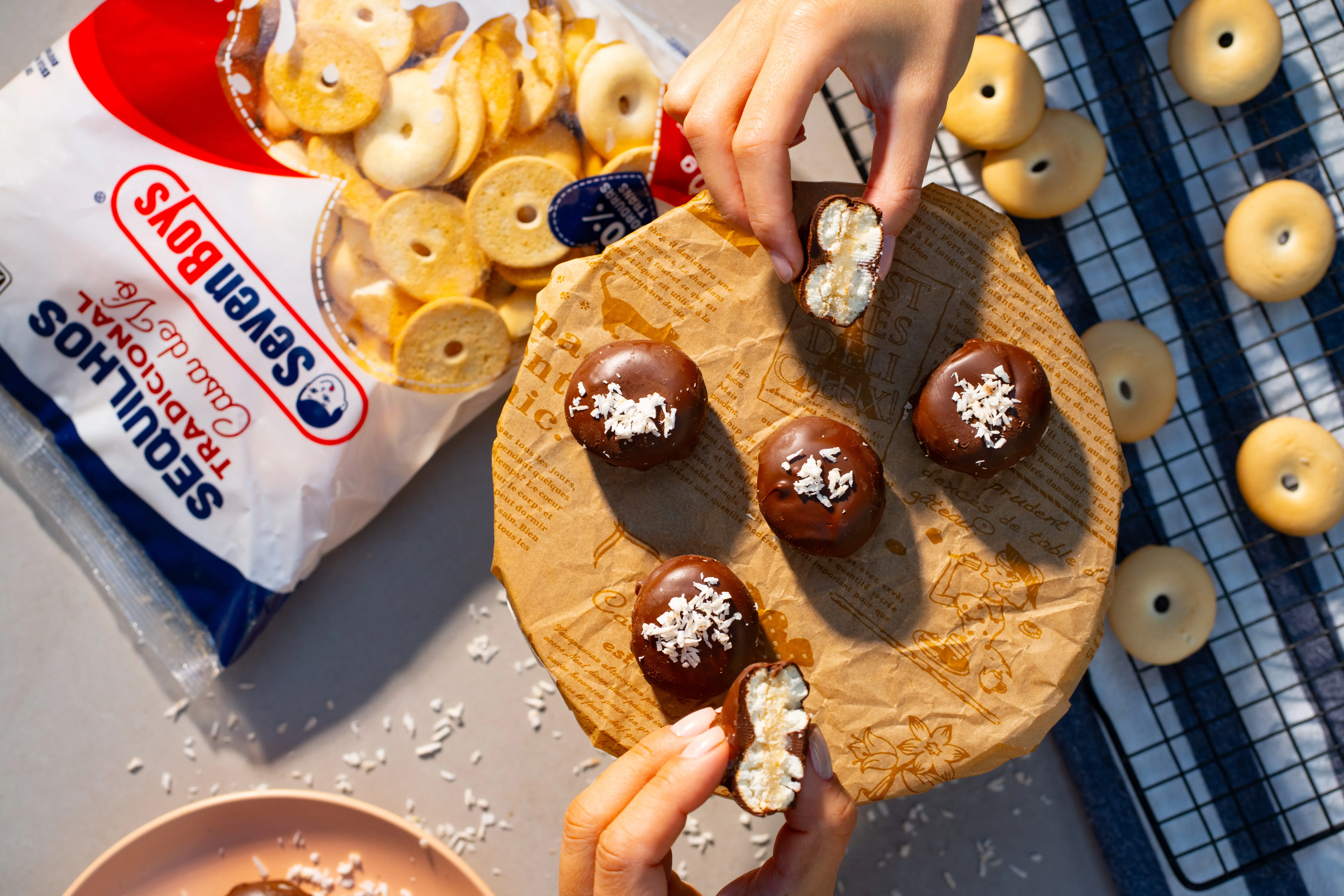 Uma ideia divertida e deliciosa para festas ou sobremesas individuais, com recheio de coco e cobertura de chocolate.